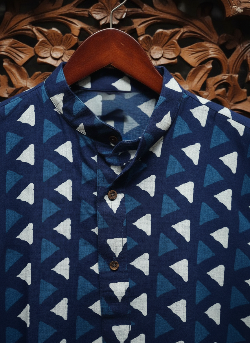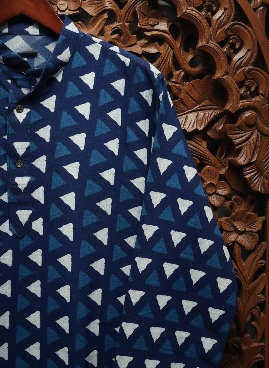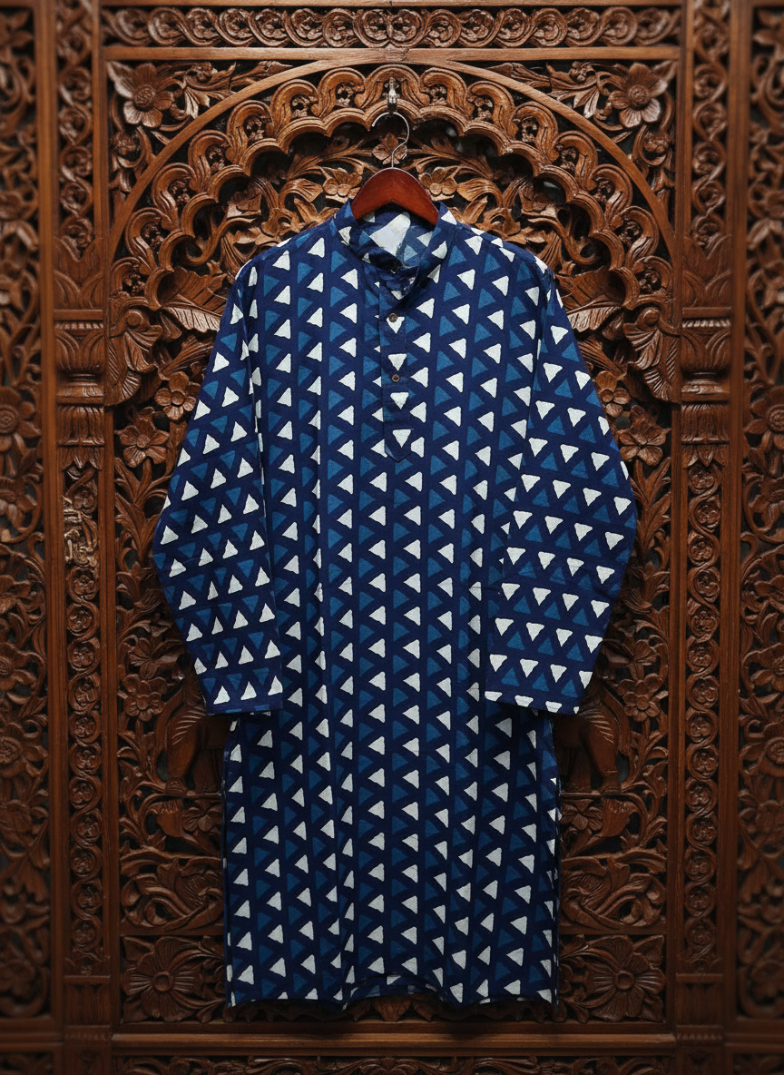 Indigo Full Punjabi (Kurta) – Hand Block Printed Geometric Design