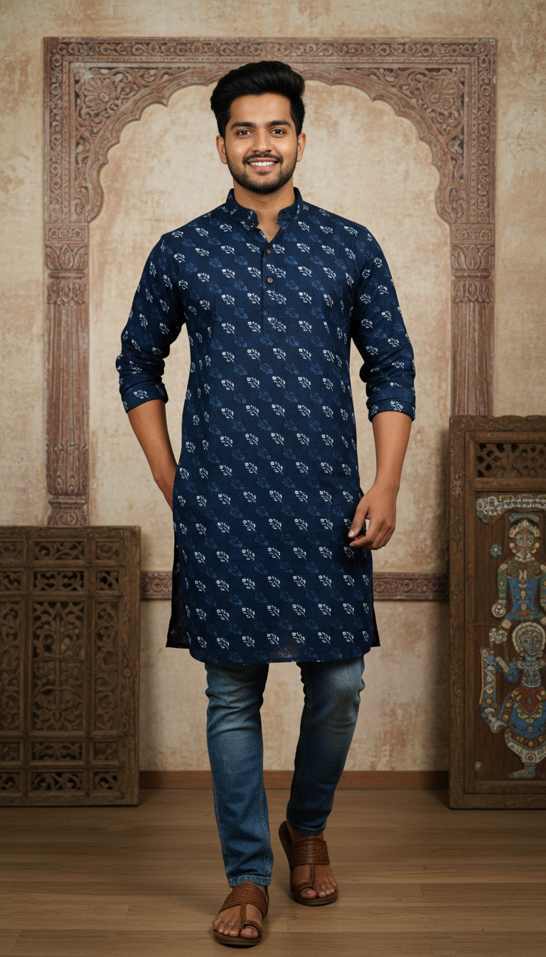 The traditional Full Punjabi cut (often known as a Kurta) provides a comfortable, flowing drape that makes it ideal for cultural events, festivals, or everyday wear when paired with jeans or pajamas. This garment is deeply rooted in tradition—it’s not just worn, it’s lived.
