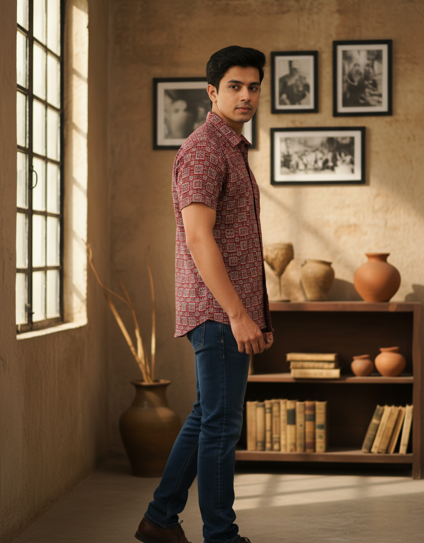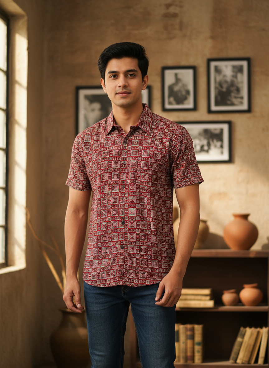 Tradition Reimagined: The Red Ajrakh Short Shirt