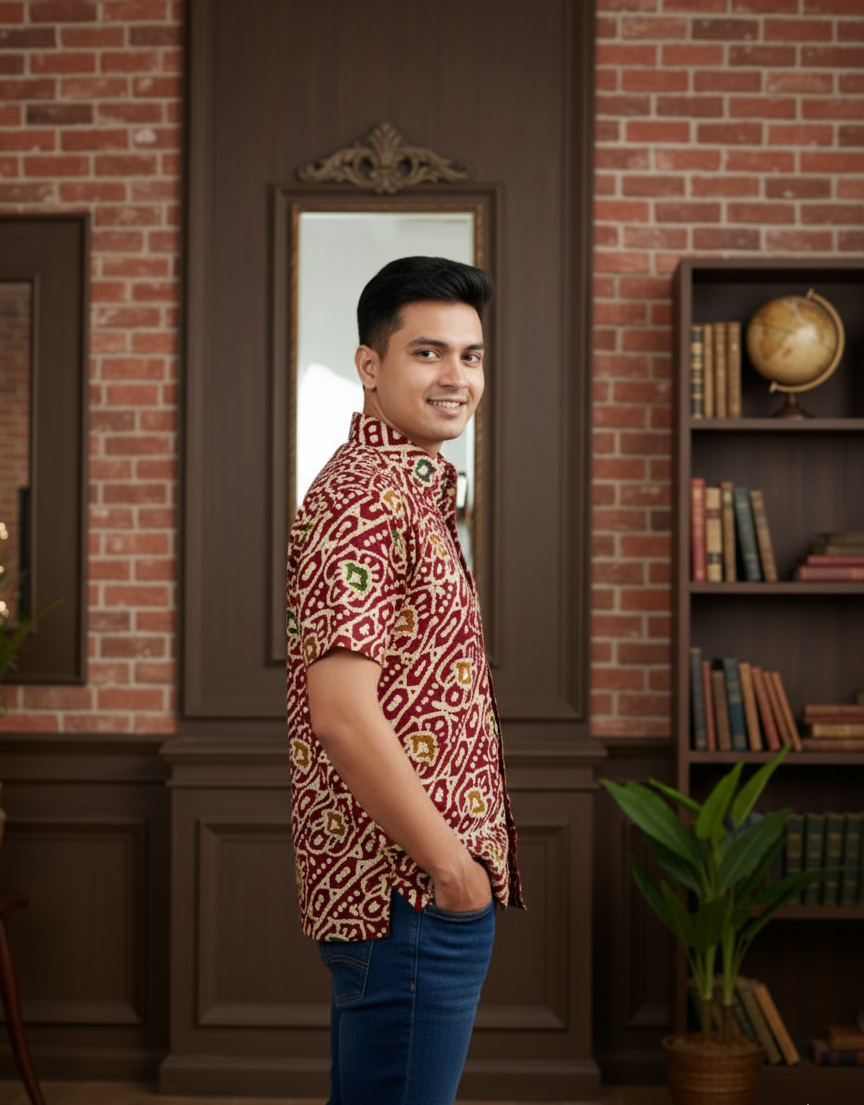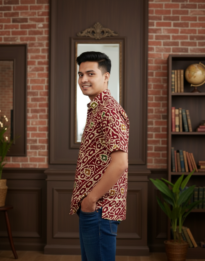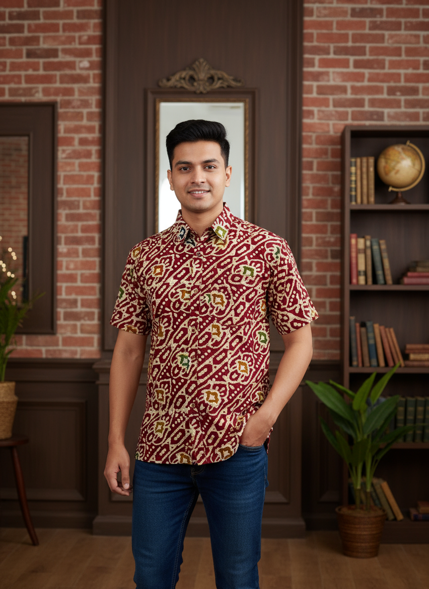 Bold, Breezy & Handcrafted: The Red Hand Batik Cotton Half Shirt
